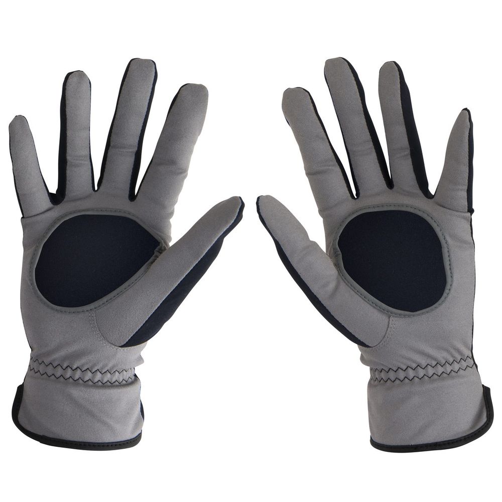 手の甲側に優しい手触りのスムース素材を使用し、手の平側にはラケットを握りやすくするためグリップホール設計。